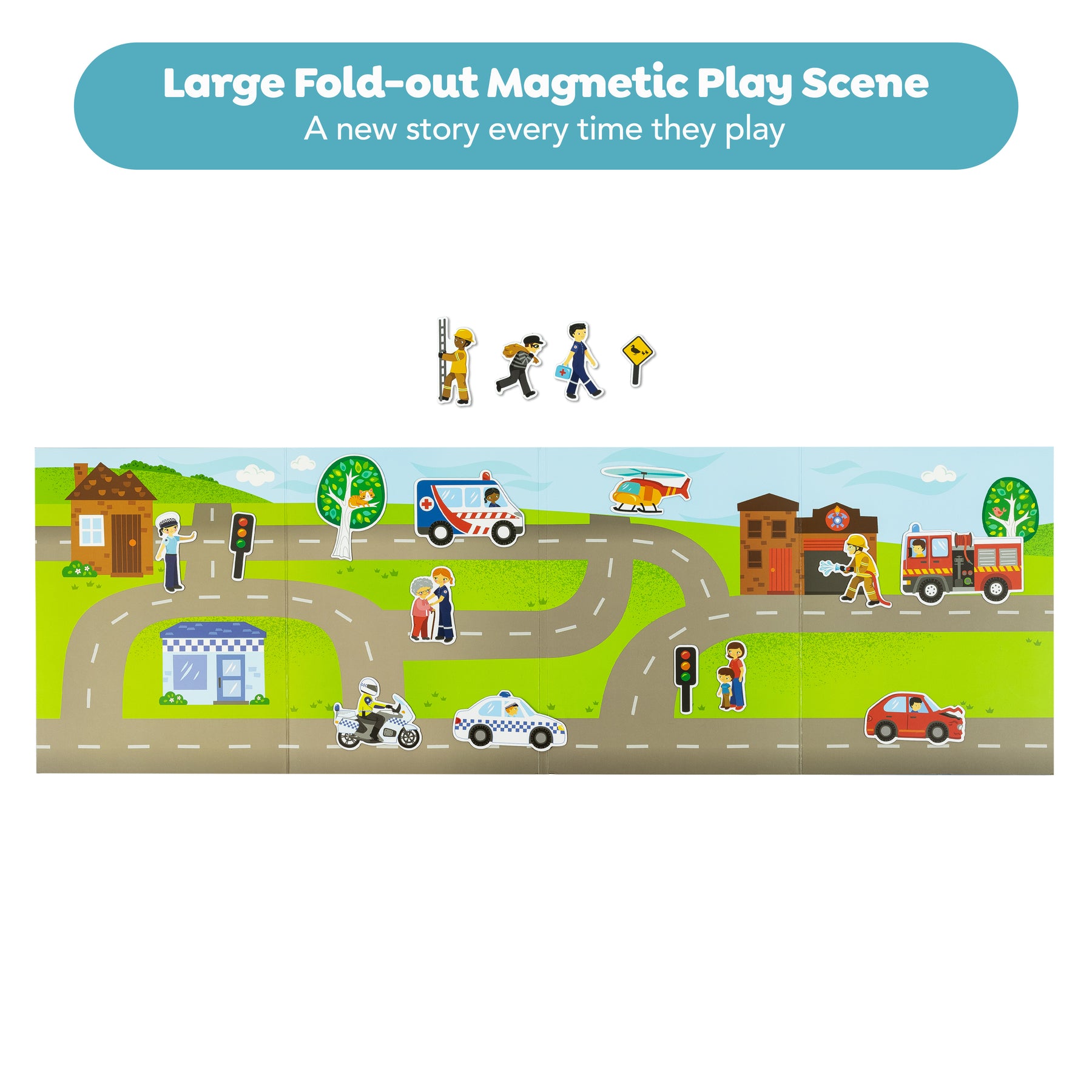Avert disaster, save kittens, fight fires and manage traffic with Tiger Tribe's Magna Carry - Emergency Rescue. Create a new scene every time you play. Then when you are finished, pack up is super fun with the match the magnet pieces puzzle on the case! Job done.